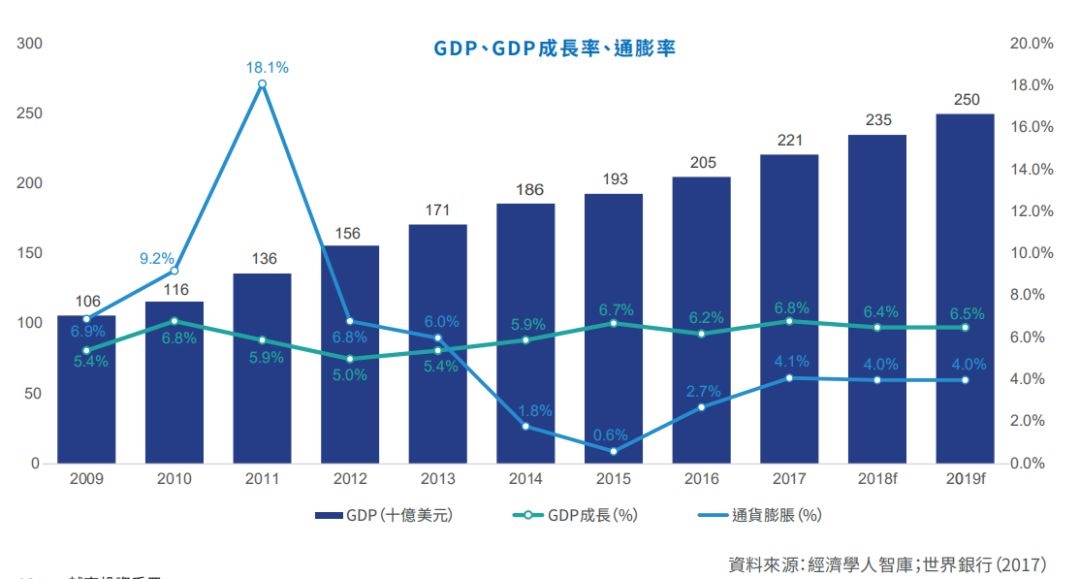 越南中产阶级队伍日益庞大,私人经济继续活跃发展,国内经营环境继续得到改善,越南加入的双边和多边贸易协定,这些都有助于越南经济复苏。