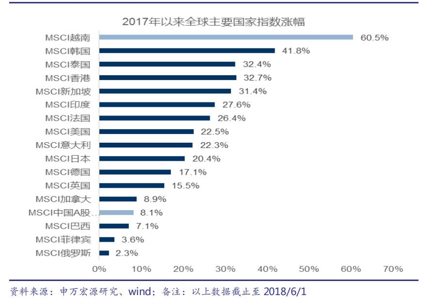 有“经济晴雨表”之称的股市来看,2017年以来越南股市表现牛冠全球。